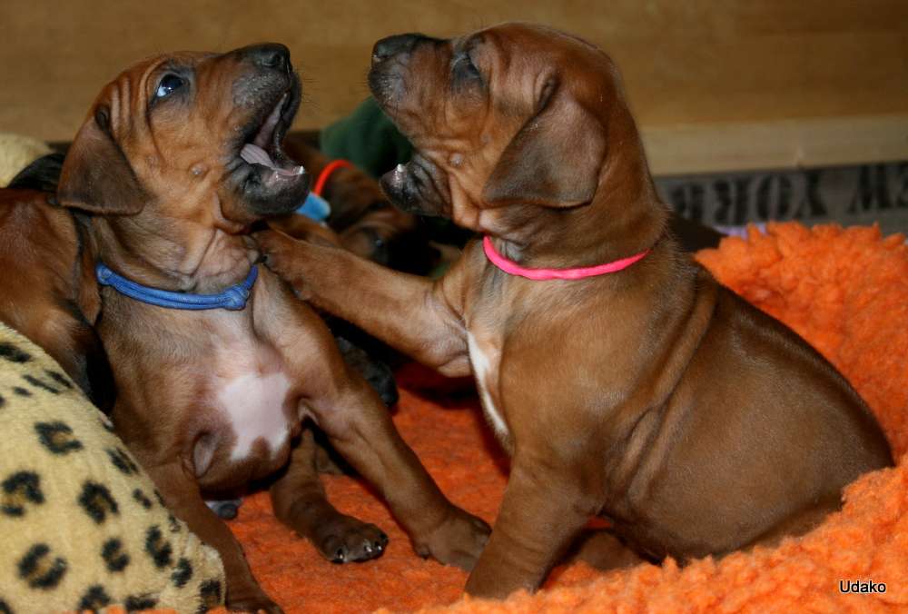 Die Besuchszeit für unsere zukünftigen Welpeneltern beginnt Ende nächster Woche und bis dahin dürfen unsere Puppies noch die Ruhe genießen und ein bißchen wachsen, denn das wird für Alle anstrengend genug werden….. und bis es soweit ist, habe ich für Euch noch ein paar Fotos gemacht 🙂