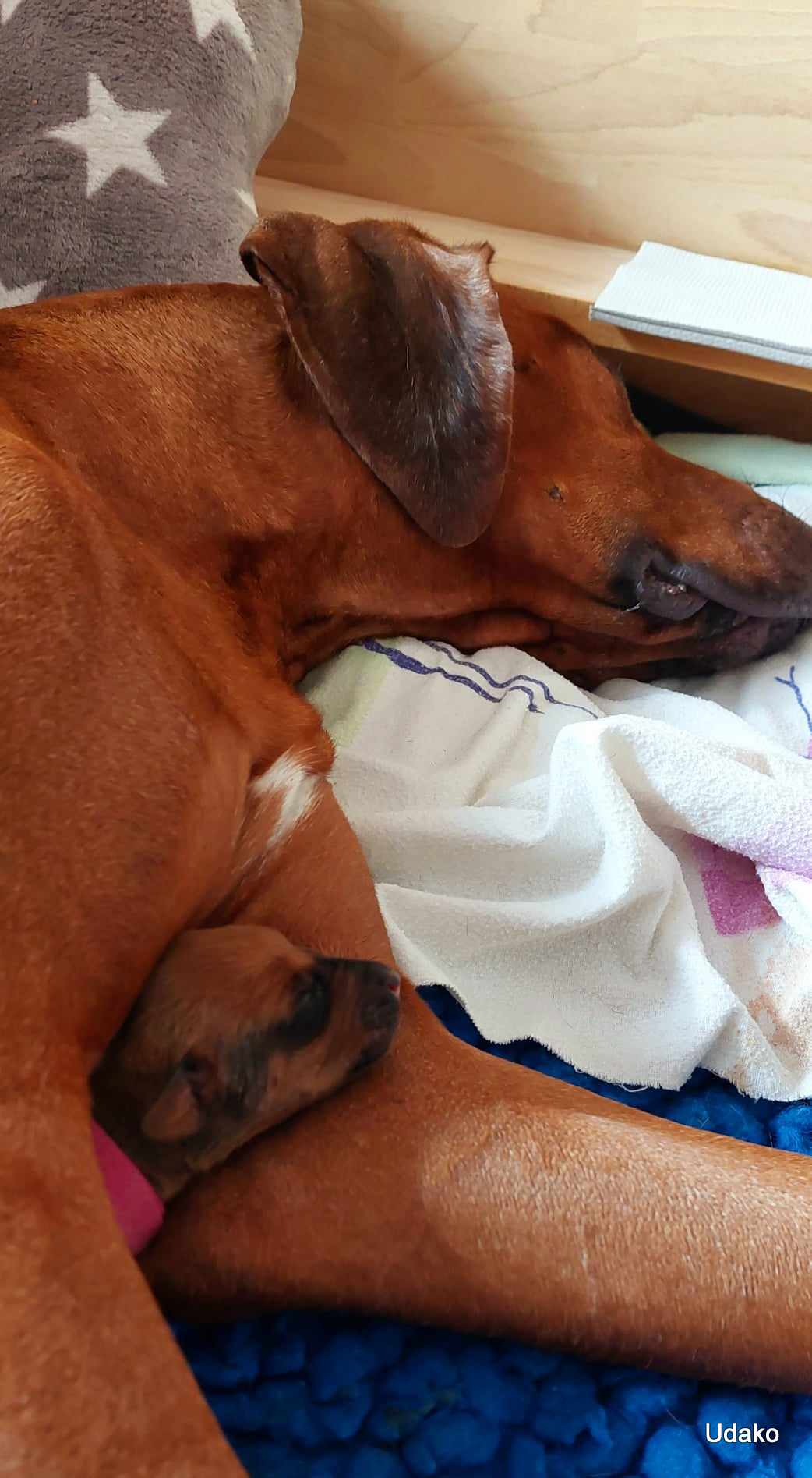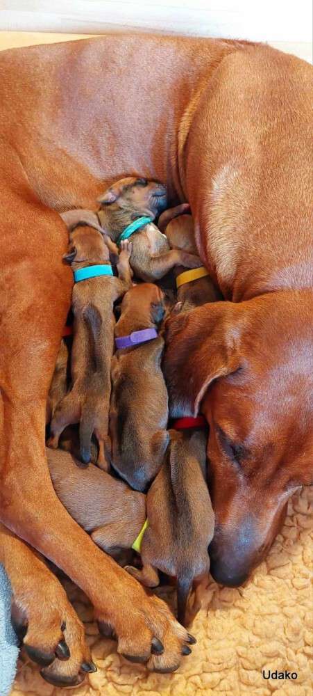 Wir kommen so langsam in unseren Rhythmus….. nicht so zügig wie nach einer einfachen Geburt und auch für Grace waren die ersten Tage nicht nur anstrengend sondern sie hatte auch vor allem nachts hohe Temperatur bis leichtes Fieber gezeigt, was mir wiederum sehr viel Sorgen gemacht hat. Trotzdem kümmert sie sich rührend um ihre Babies und verläßt nur im Notfall (Pi und Ka) das Wurflager.