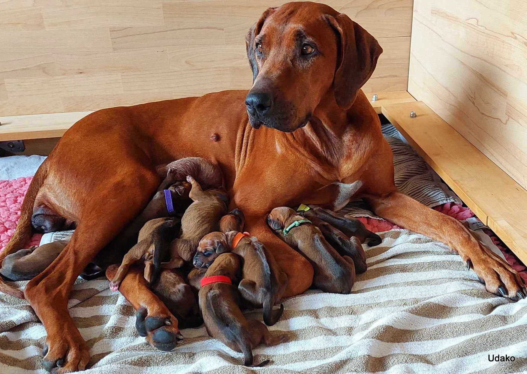 Grace geht es dementsprechend und sie kümmert sich rührend um ihre Kleinen und da die jetzt gerade wieder wach werden, gehe ich wieder in die Kiste und bitte einfach darum, uns hier noch ein paar Tage Ruhe zu geben. Wir melden uns, auch bei den Interessenten aber jetzt gilt hier: Grace und Puppies first!!!!!!!