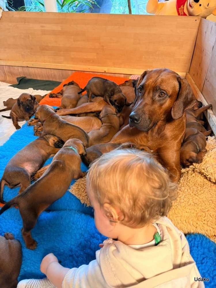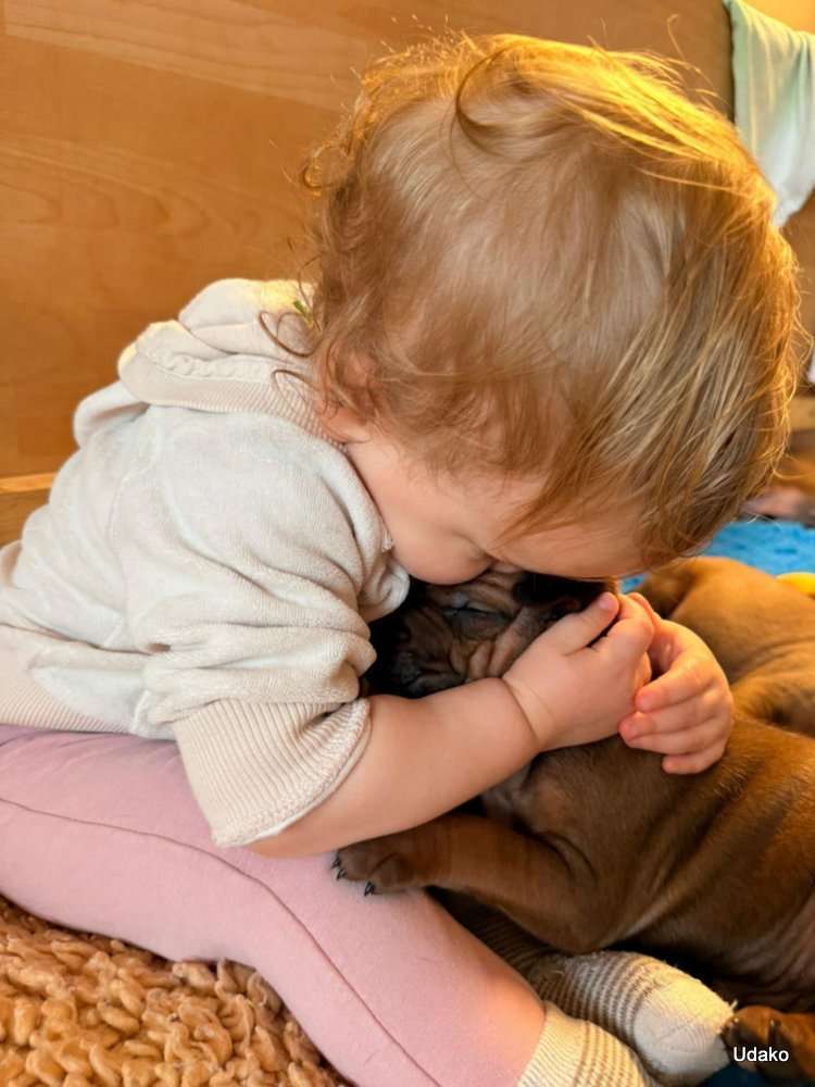 Besonderes Augenmerk lege ich immer darauf, dass unsere Welpen auch den Kontakt mit Kindern unterschiedlichen Alters kennenlernen, ein für mich enorm wichtiger Aspekt und daher bin ich allen Eltern unserer inzwischen recht grossen Hundefamilie dankbar, dass sie die schöne Gelegenheit nutzen, auf beiden Seiten für eine wunderbare Annäherung zu sorgen.