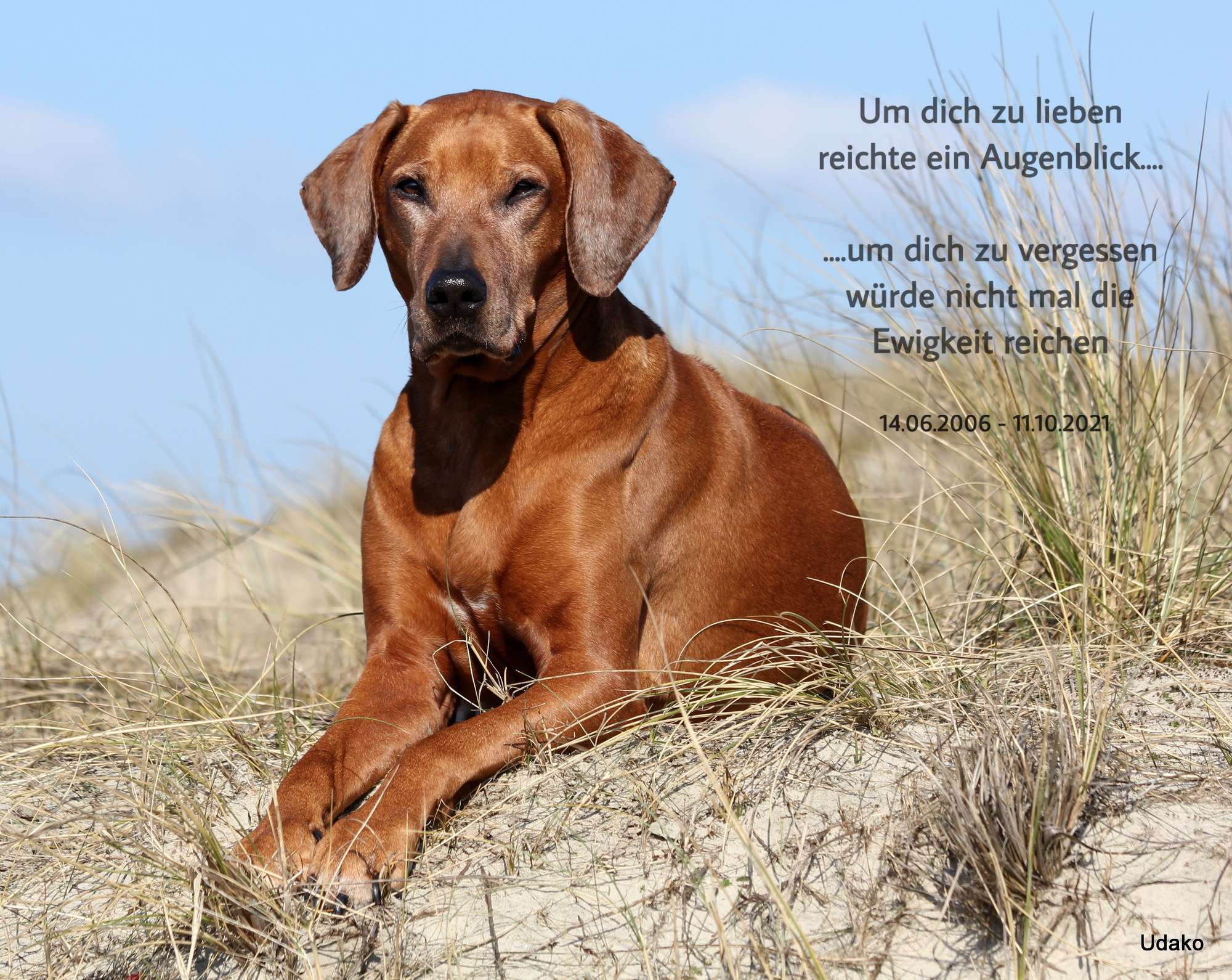 Kimba und ich haben eine sehr lange und ausgefüllte Zeit miteinander geschenkt bekommen und wenn ein bißchen Zeit verstrichen ist, wirst Du hier einen Platz „In Memoriam“ bekommen…. in meinem Herzen und in den Herzen vieler lieber Freunde bleibt Du unvergessen