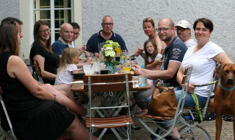 Da die jungen Wilden nun mittlerweile auch schon fast 15 Monate alt sind, hatten wir etwas Bedenken, ob sich alle noch so problemlos miteinander vertragen werden, aber diese Sorge war völlig unbegründet. Sowohl die beiden Mädels als auch die Rüden haben sich sehr sozial gezeigt, nicht nur den Geschwistern gegenüber sondern auch den vielen Hunden, denen wir unterwegs begegnet sind. Darüber habe ich mich wirklich sehr gefreut!!! Natürlich hat uns auch das sehr heisse Wetter dabei geholfen, die Wilden etwas ruhiger zu halten, so war auch die Abkühlung im Rhein sehr willkommen. Anschließend haben wir das GAnze noch gemütlich abgerundet in einem sehr schönen Gasthof, in dem extra für uns ein eigener Bereich vorgesehen war, vielen Dank hierfür an Simone und auch allen Anderen für ihr Dabeisein.