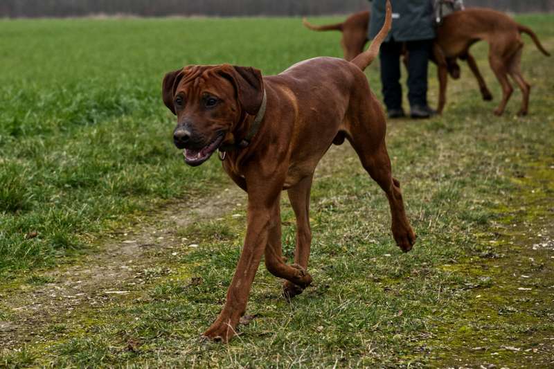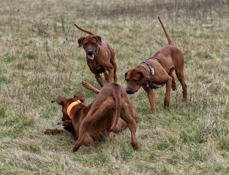 Getroffen haben wir uns in Kerpen bei uns in der Nähe und mit an Bord waren vier Hündinnen und drei Rüden nebst Familien. Besonders gefreut habe ich mich darüber, daß auch unsere Schweizer und Luxemburger mit von der Partie waren ebenso wie meine Freundin und „Hebamme“ Mirjam. Die jungen Wilden haben ausgiebig und vor allem ridgeback-like getobt, das wirkt dann schon mal etwas wüst aber da jeder ein gutes Auge für seinen eigenen Hund hatte, blieb alles friedlich. Etwas was mich persönlich in dem Alter von 9,5 Monaten sehr gefreut hat, sowohl bei den Jungs als auch bei den Mädels.