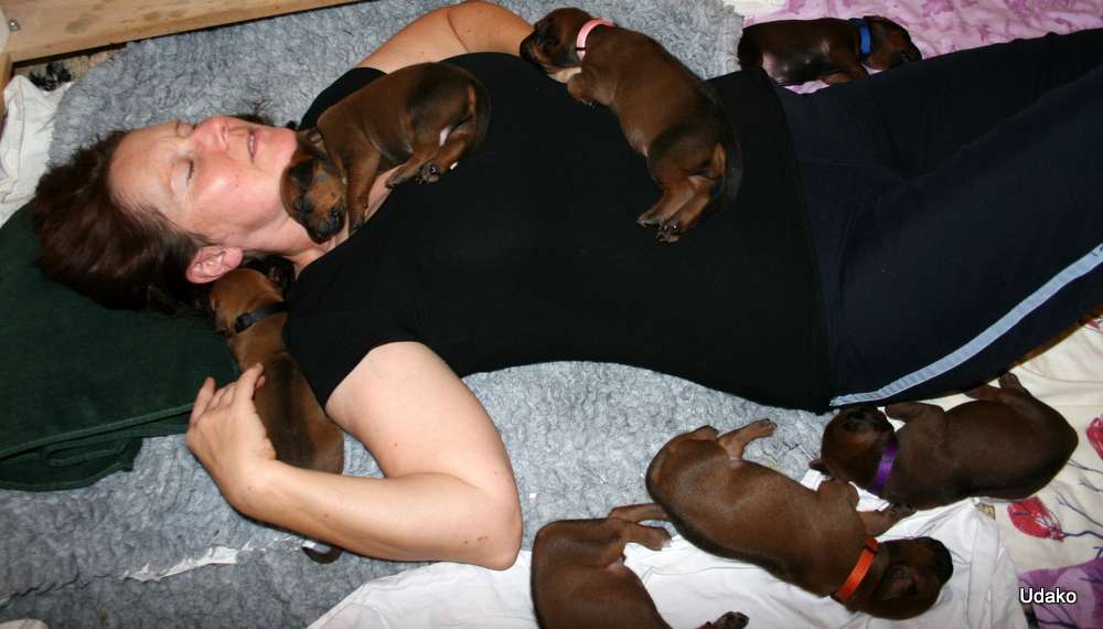 Der enge Kontakt zu Erwachsenen und Kindern ist mir sehr wichtig, deshalb ist auch der Besuch der zukünftigen Welpeneltern absolut erwünscht, ebenso wie der meiner schon bestehenden UDAKO-Familie.